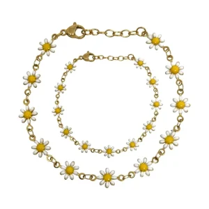 ست دستبند و پابند دست ساز زنانه مدل گل بابونه